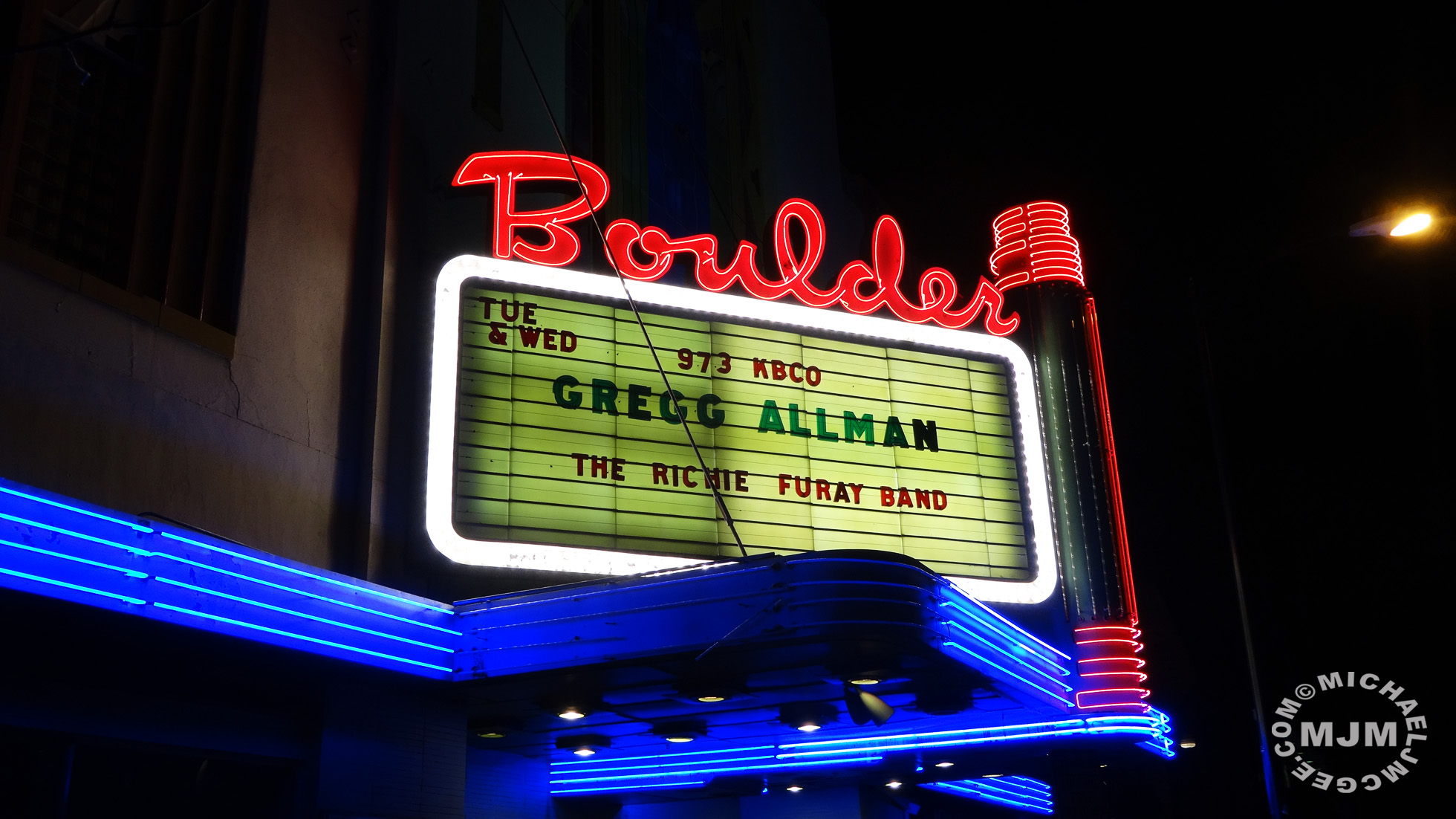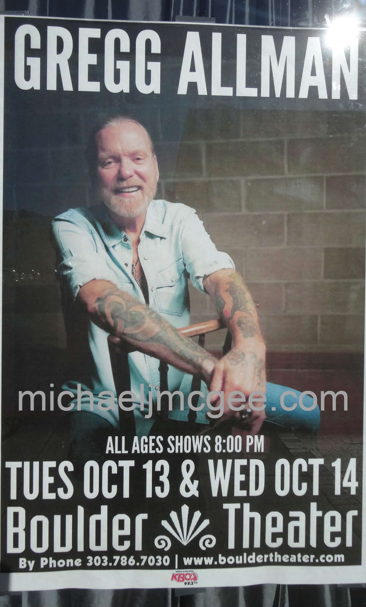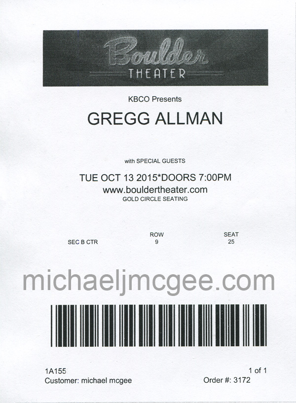 I've been a long time fan of the original members of this fantasic classic southern rock band. I attended Greg Allman's Boulder, Colorado show on Tuesday. He looked very frail but played and sang well. He had a fantastic backing band. Per usual I show up early to hopefully meet Gregg. Gregg did not attend the sound check and showed up about 20 minutes before his show. His manager kept Gregg isolated from all his fans wanting to meet him.