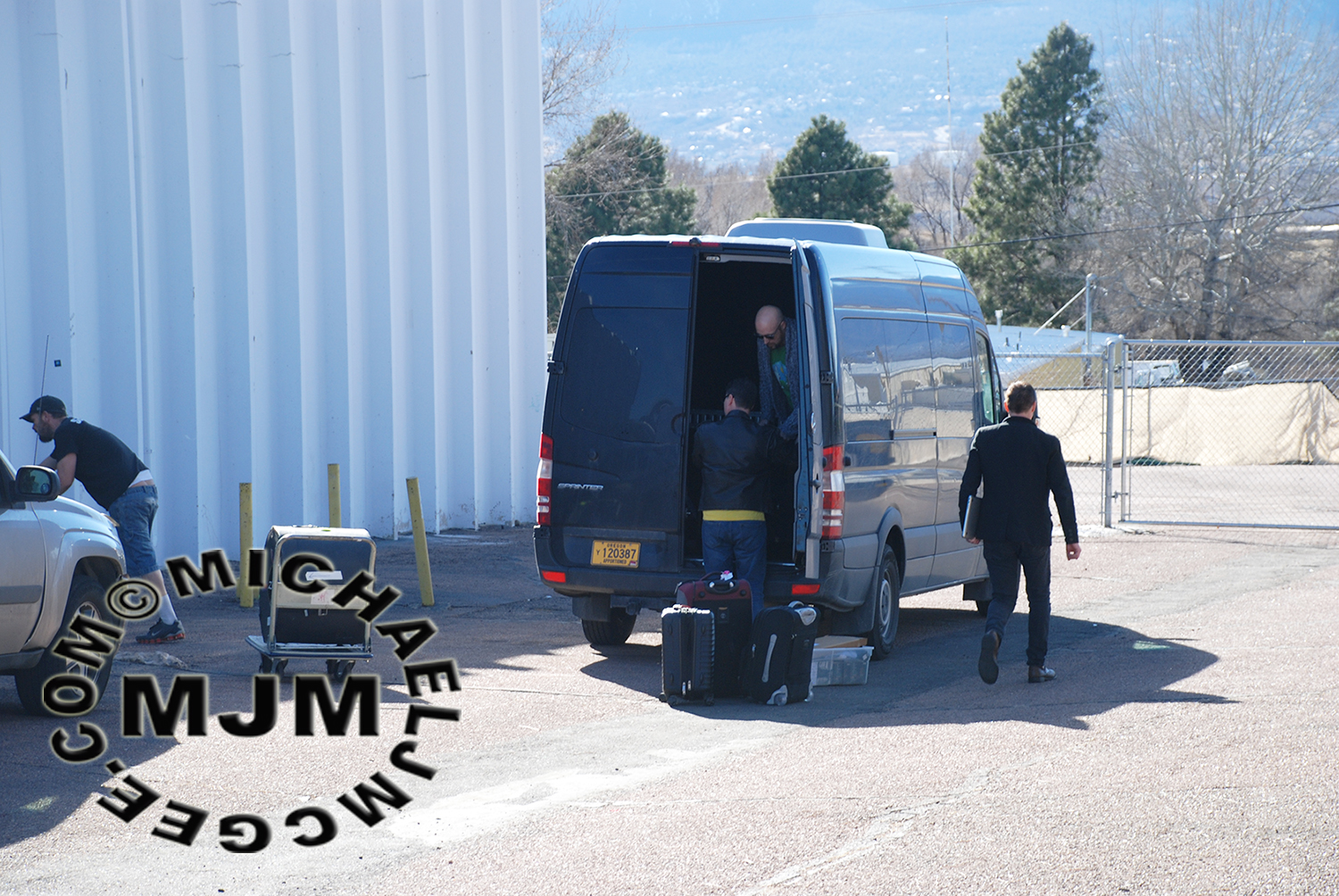 JR's Bassist & Drummer workin' hard unloading their eqiupment pre sound check.