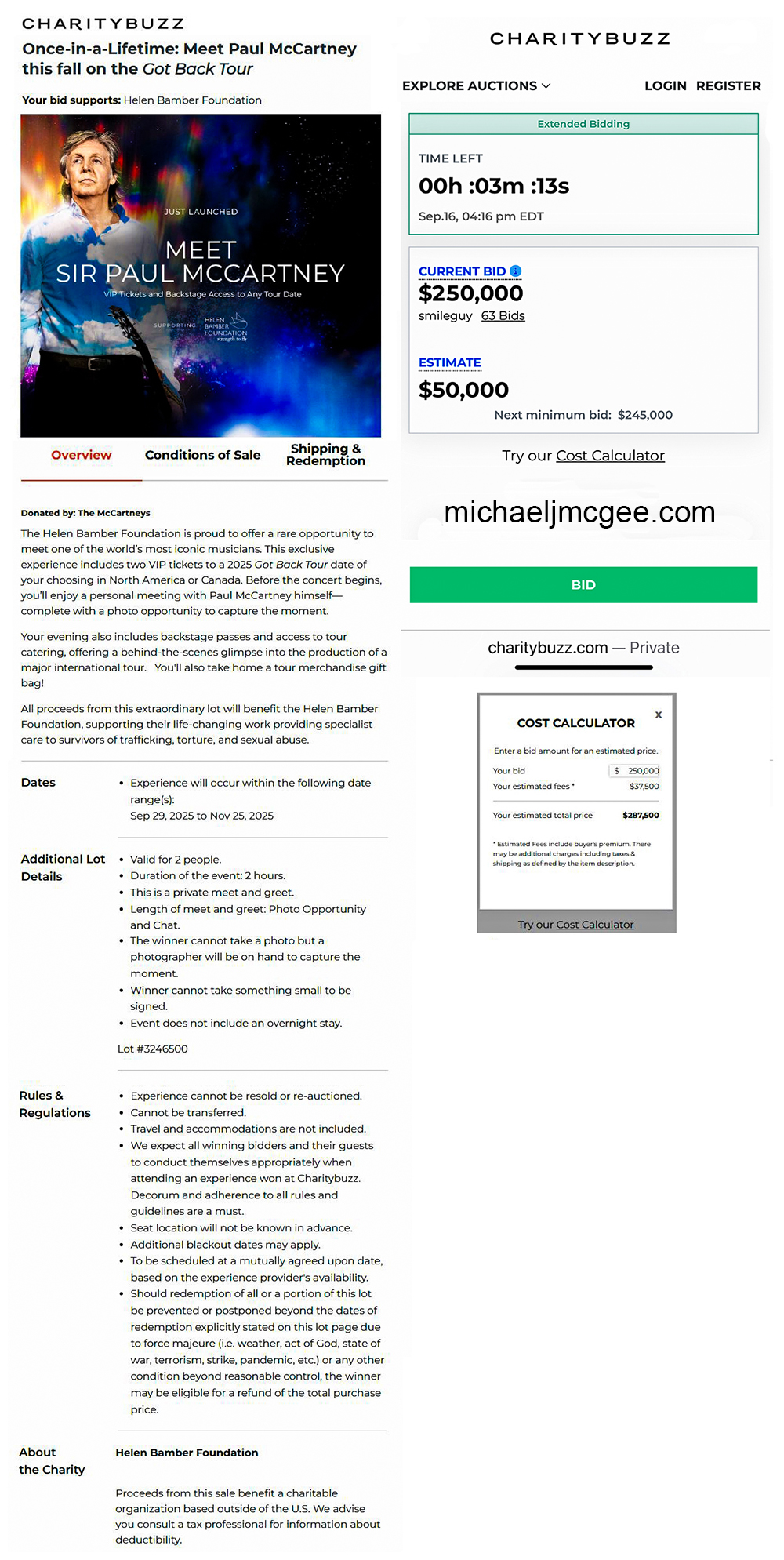 Sir Paul offered 2 Meet & Greets for his Got Back US / Canada 2025 tour both through CharityBuzz.
